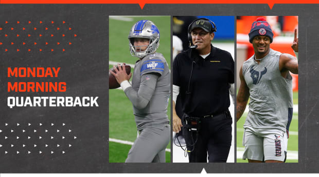With that reality, I don’t know which domino will fall next. And that’s part of what drove the market for Stafford—it gave the Rams certainty, and it allowed the Lions to move to get the most for him, with other teams uncertain of which other quarterbacks could spring free in the coming weeks. Obviously, if Watson’s available, there’ll be a frenzy to poach him from Houston. But after that? Other teams are monitoring what the Jets do with Sam Darnold. Whether or not the Raiders move forward with Derek Carr always seems to be a year-to-year thing. The Eagles have been non-committal on Carson Wentz. Dak Prescott’s likely getting hit with the franchise tag for a second consecutive year. Cam Newton, Mitch Trubisky, Jameis Winston, Andy Dalton, Tyrod Taylor and Ryan Fitzpatrick are among those with starting experience who’ll be out there in free agency. For all the fun discussion we’ve had the last few weeks, the options out there, as of now, are just O.K. If Watson and Darnold become available, obviously, that’d change a few things.